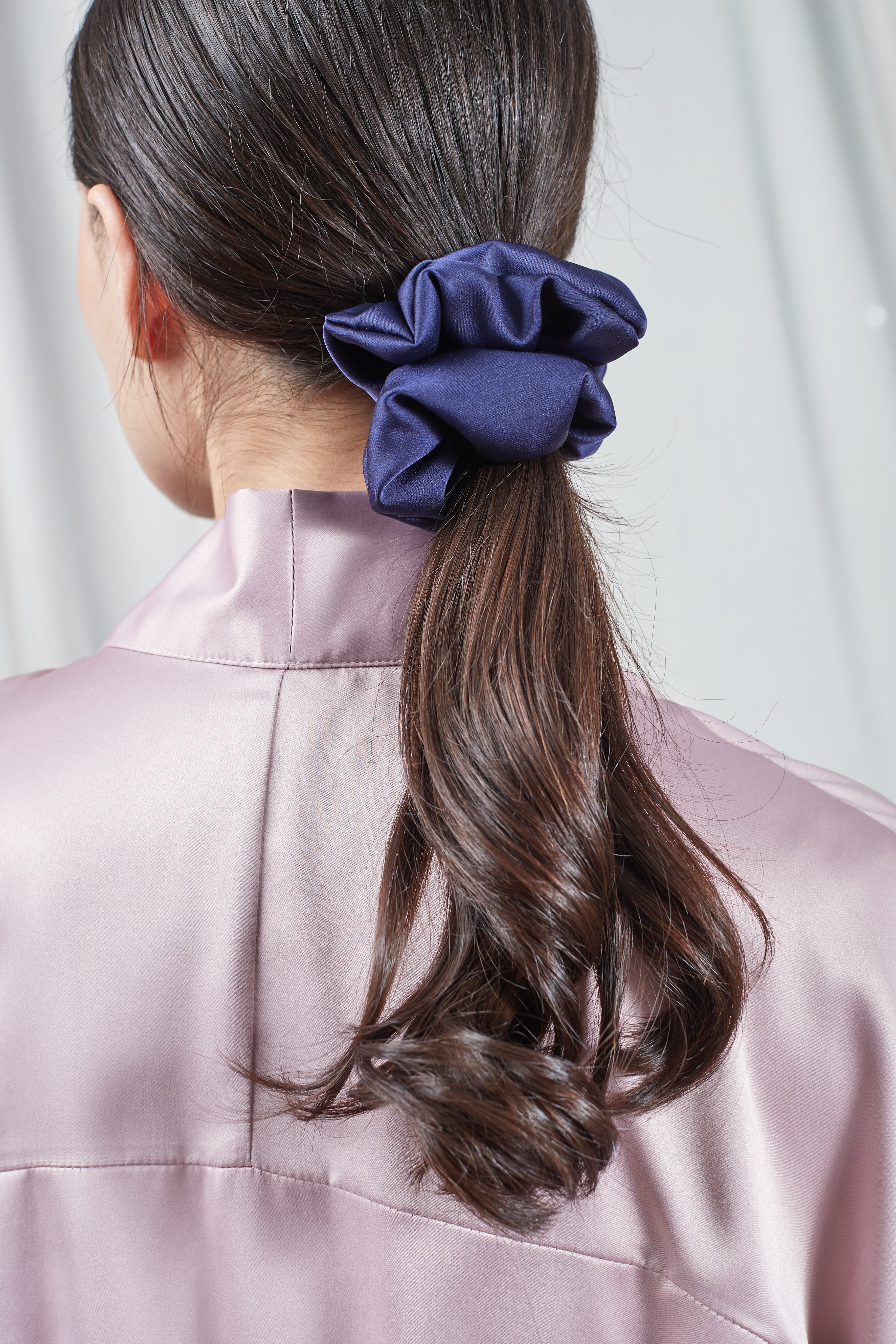 Discover effortless elegance with our exclusive satin elastic, offered in a sophisticated shade of navy blue. This accessory is a universal must-have, suitable for any time of the day, whether you want to tidy your sleek hair during your daily activities, relaxing hours at home or while you sleep. Its one-size-fits-all design ensures that this elastic will fit anyone, eliminating any size concerns. Make sure you always have this high quality silk elastic on hand for a chic and practical solution to manage your hairstyle