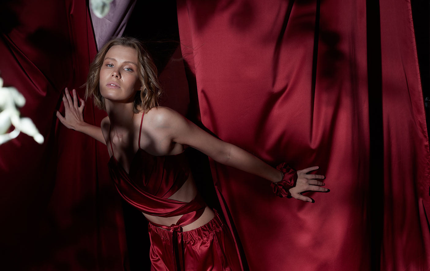 Body in burgundy satin
