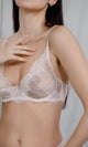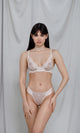 Deep V-neckline bustier that combines elegance with a seductive design, highlighted by custom embroidery in shades of beige, accented with the brand's distinctive logo on sheer sheer tulle. The scalloped-edged cups add a playful flair to the piece, while the adjustable elastic straps ensure an optimal fit. For a completely irresistible ensemble, team it with our briefs in the same refined style