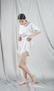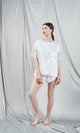 These ivory shorts are made from a luxurious satin fabric. They have a simple design with an elasticated waist for a comfortable fit. The relaxed fit offers freedom of movement, making them ideal for wearing at home or as part of a stylish pyjama set. The pants combine functionality with aesthetics, being both practical and pleasant to the touch. This piece of clothing is an exquisite choice for anyone who wants to combine comfort with sophisticated style even when resting