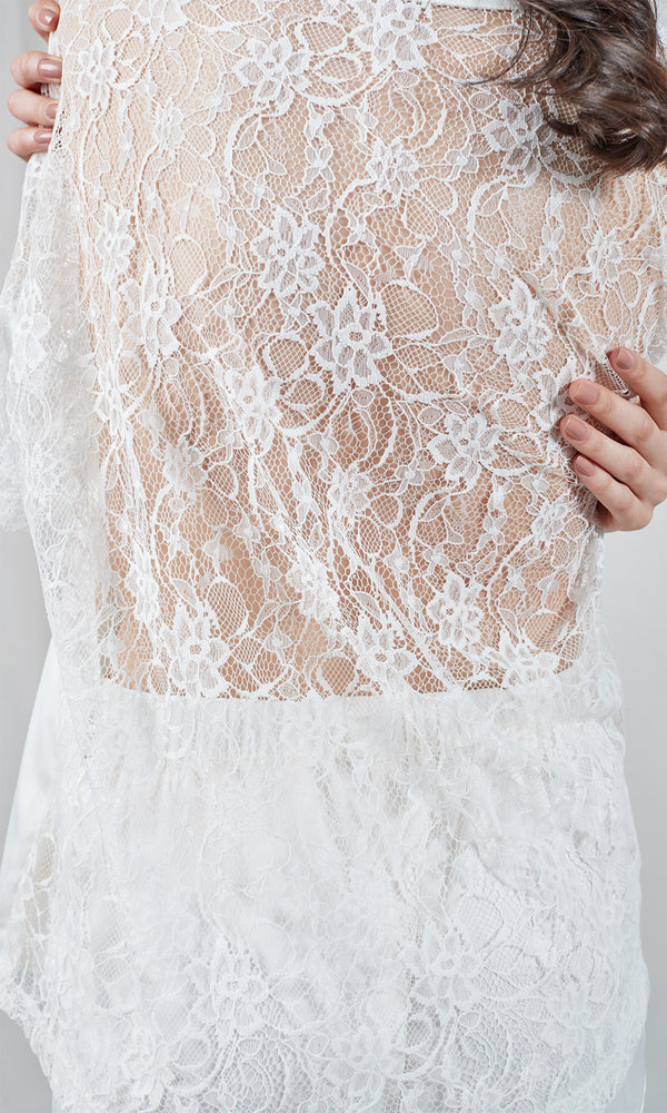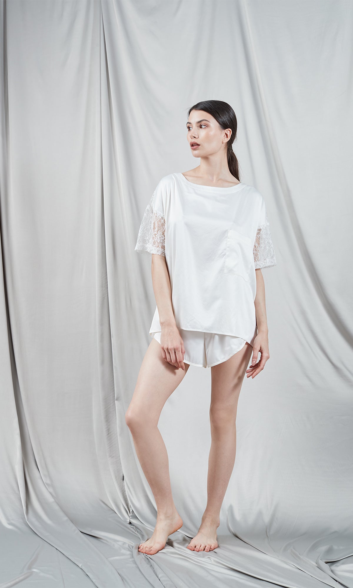Ivory satin T-shirt with lace