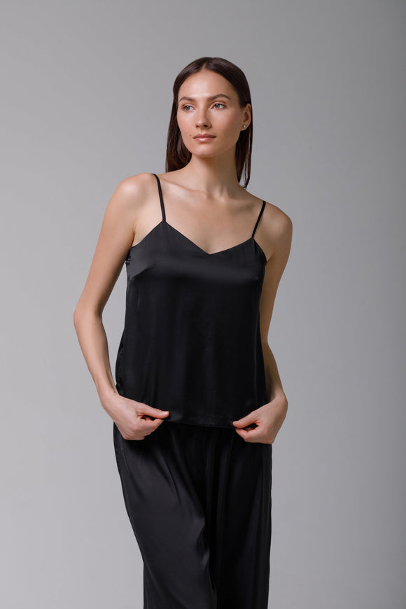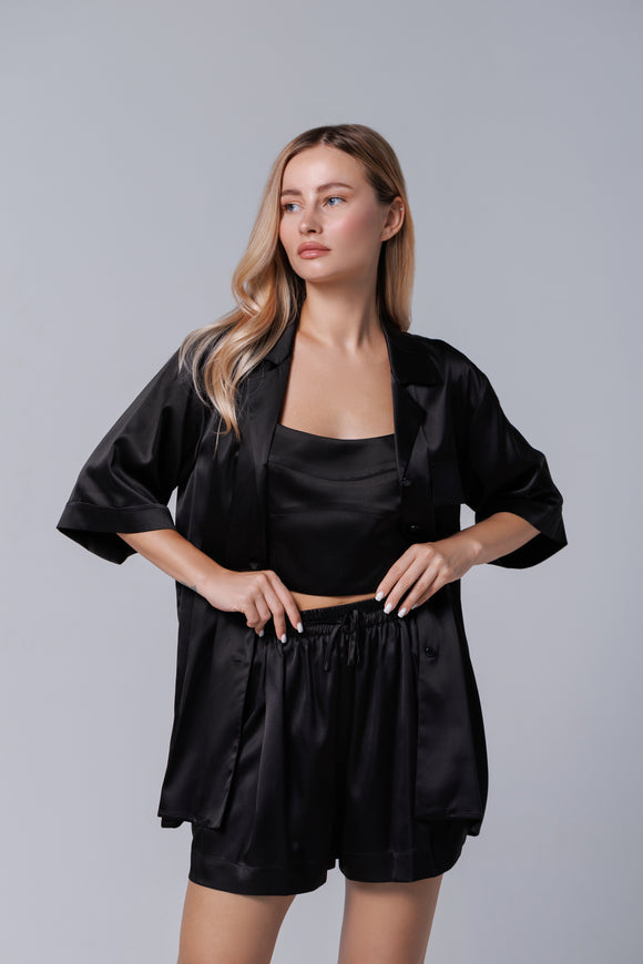 Black satin pyjama set