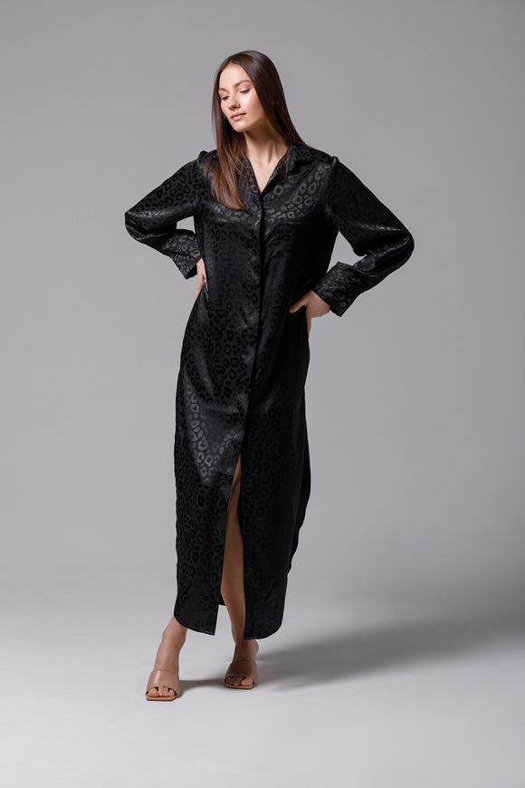 Long black satin dress