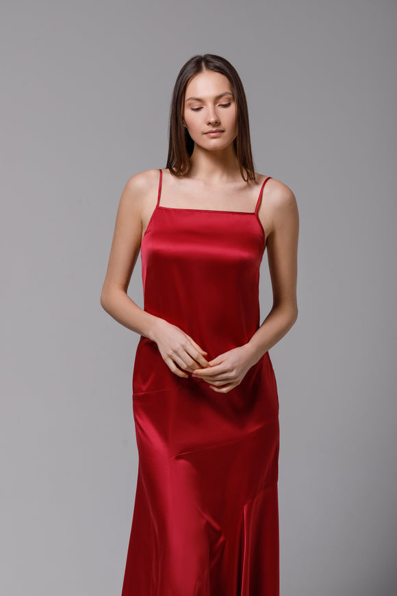 Long dress in burgundy satin