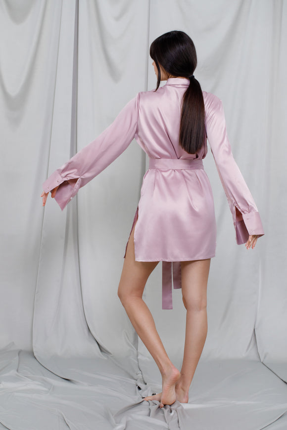 Short shirt in pale pink silk