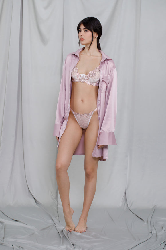 Long kimono in pale pink satin