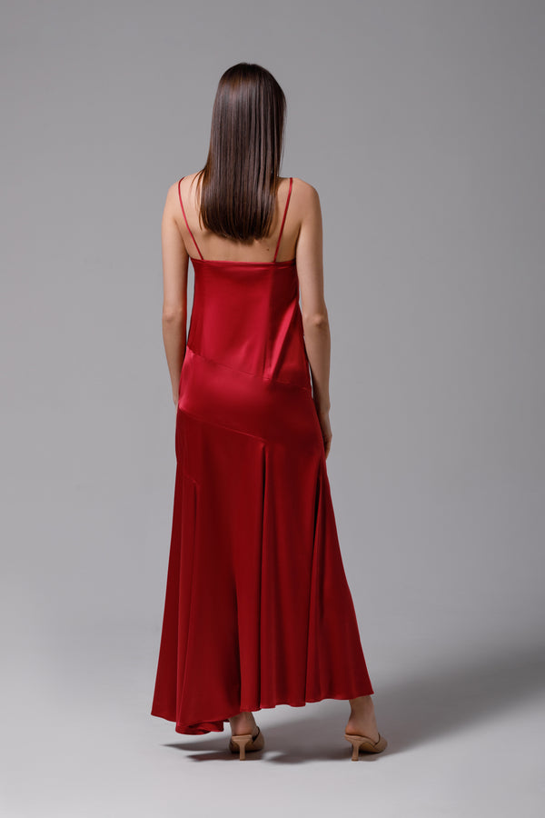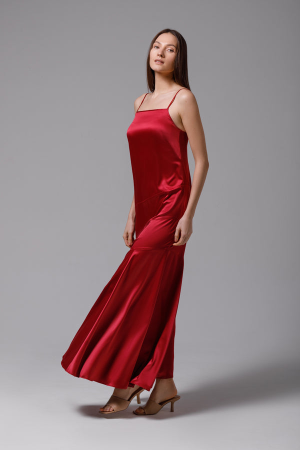 Long dress in burgundy satin