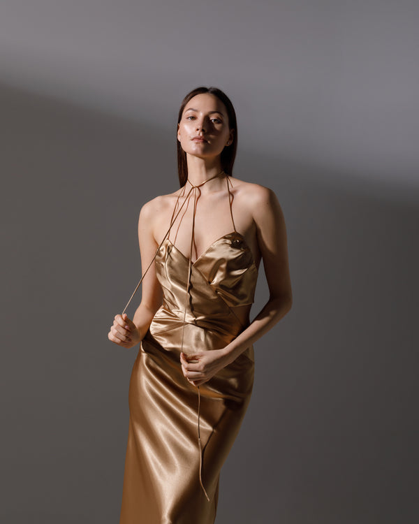 Long dress in champagne satin