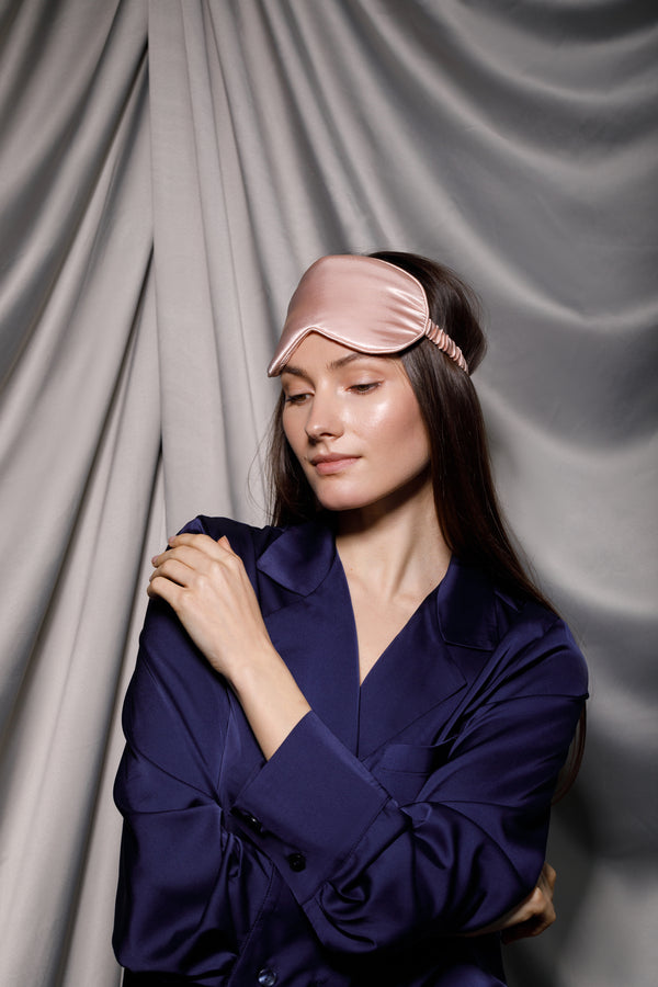 The culmination of our best-selling collection of silk pyjamas, the rose-hued sleep mask perfectly completes the ensemble. Created with the same attention to contrasting detail that's characteristic of the entire collection, this mask is made entirely from satin, offering a delicate and skin-friendly touch. It is the essential accessory for a luxurious and peaceful night's sleep.