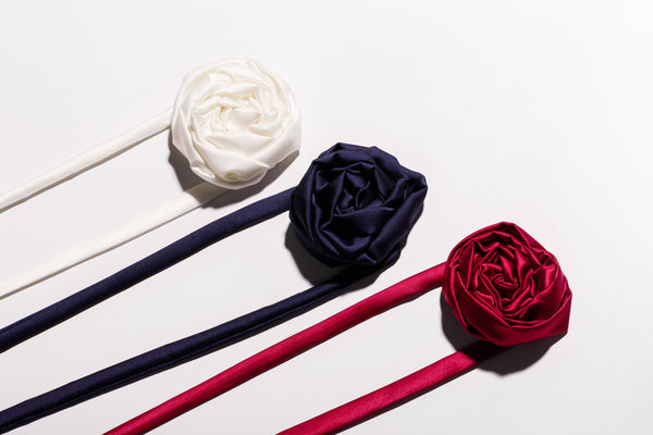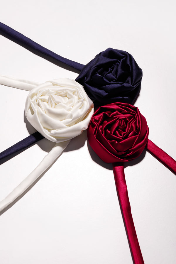 Discover our navy blue flower choker, a delicate and charming accessory that will add an elegant and bohemian touch to any outfit. This choker is decorated with silk roses in a deep shade of navy blue, giving it a captivating and romantic look