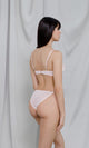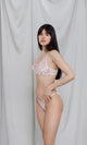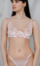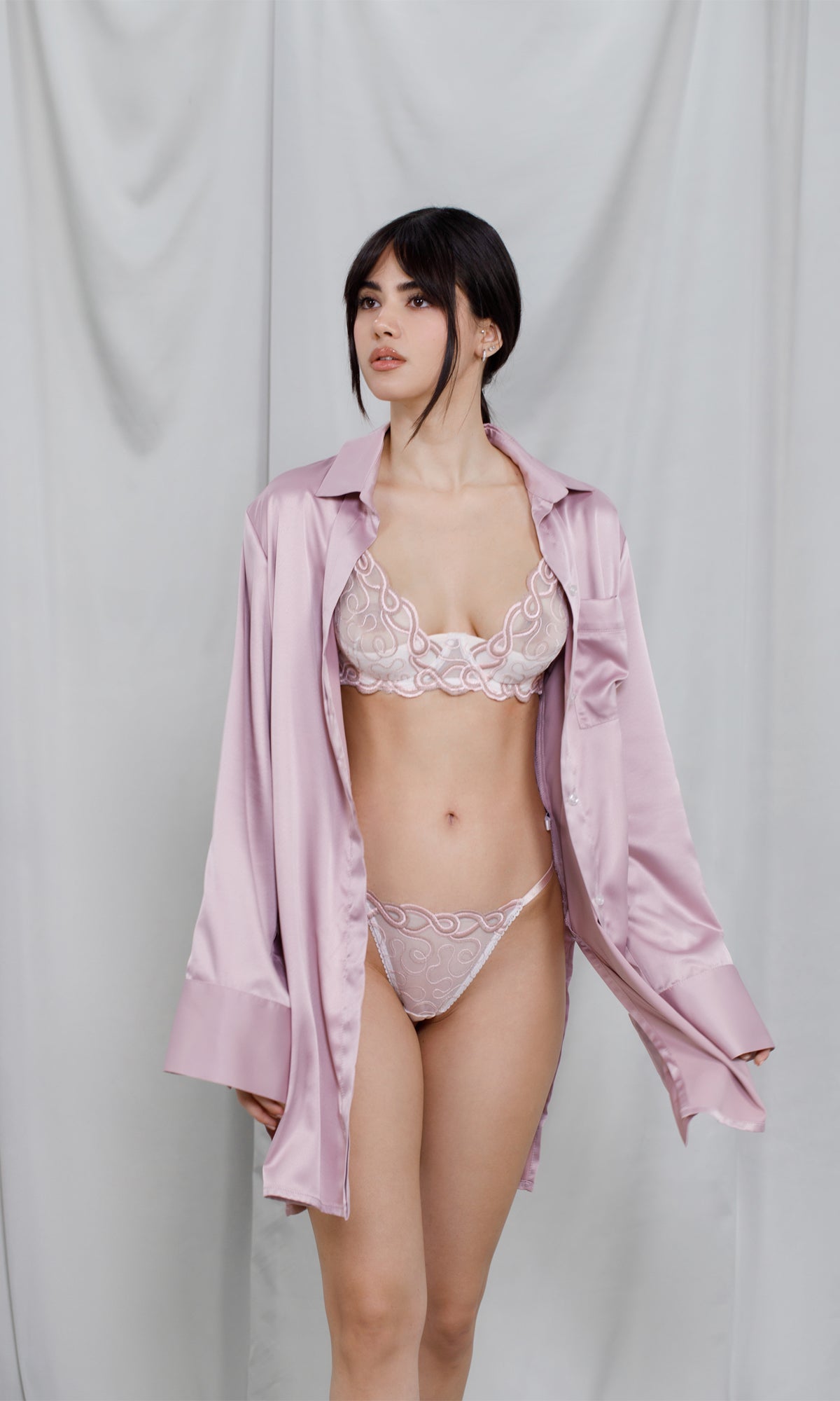 Pale pink satin features a sophisticated design enriched with exclusive embroidery in shades of pink. The cups are finished with a scalloped edging that adds an extra touch of charm and femininity. It features adjustable straps, wrapped in stretch fabric for a snug fit and comfort. For a harmonious and seductive ensemble, opt for the pink panties, which perfectly complement this romantic set